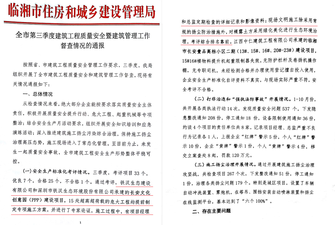 2018年12月12日,湖南省臨湘市建筑工程質(zhì)量監(jiān)督管理站安全標(biāo)準(zhǔn)化考評(píng)組對(duì)臨湘市長(zhǎng)安文化創(chuàng)意園PPP項(xiàng)目進(jìn)行了四季度安全、質(zhì)量標(biāo)準(zhǔn)化綜合考評(píng),鐵漢建設(shè)工程總監(jiān)徐俊海、創(chuàng)意園項(xiàng)目經(jīng)理謝連春以及華中區(qū)域自評(píng)人員李通全程參與考評(píng)。