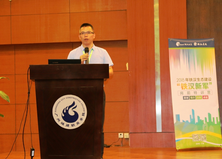學(xué)院致辭環(huán)節(jié),廣州城建建工學(xué)院領(lǐng)導(dǎo)陳勇系統(tǒng)地介紹了專業(yè)技能課程,同時(shí)回顧了往屆“鐵漢新軍”崗前特訓(xùn)的精彩瞬間,并對學(xué)員提出培訓(xùn)紀(jì)律要求。